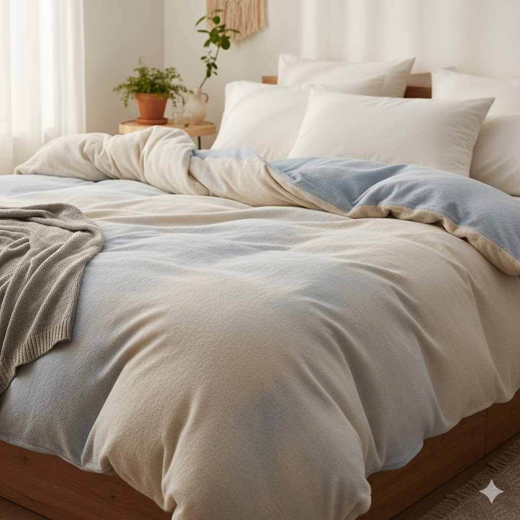 掛け布団は「寝室の景色」をつくる重要な存在でもあります。選ぶときは機能性だけでなく、布団カバーや部屋全体との調和も意識すると、見た目も気持ちも快適さがぐんと増します。