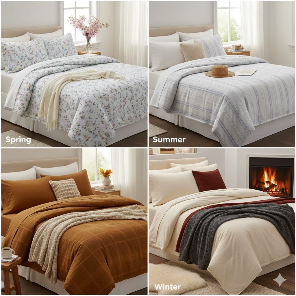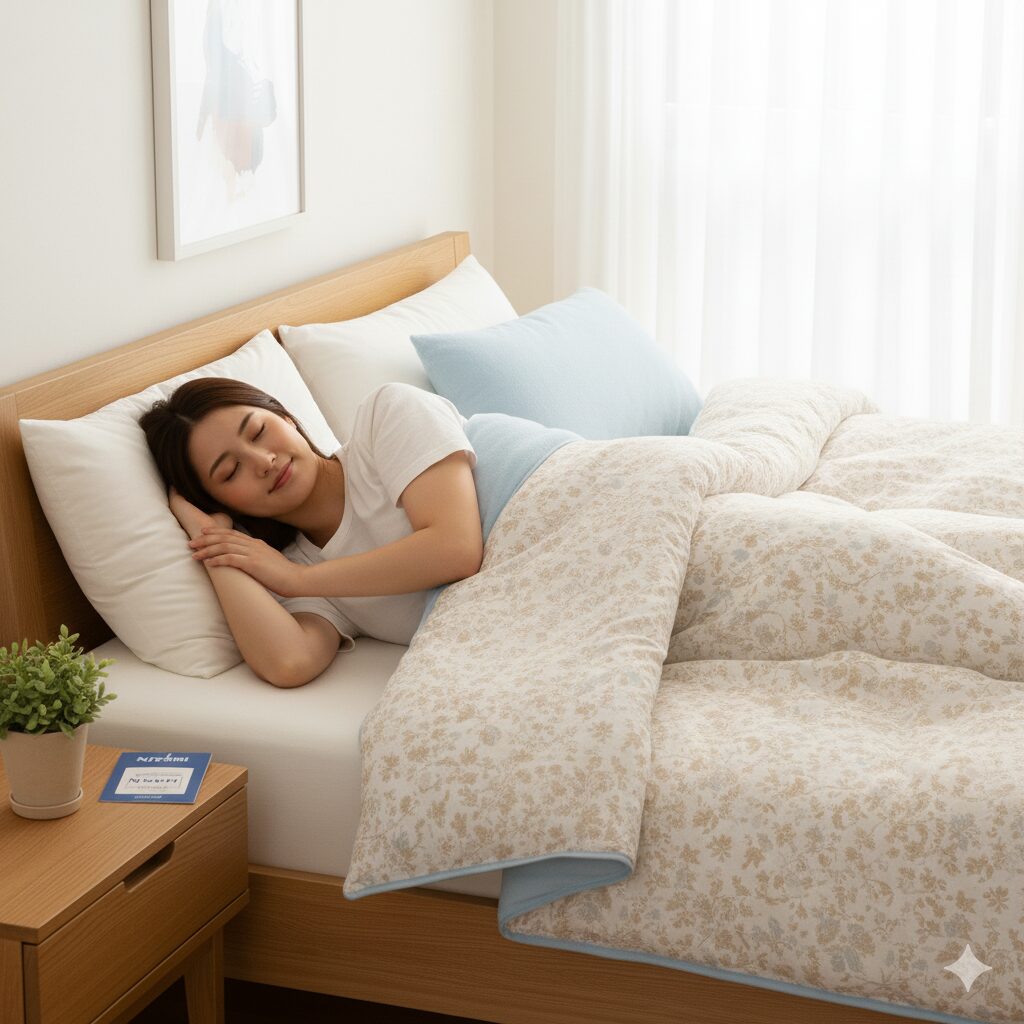 💡 インテリアの工夫:春は明るい色のカバー、秋は落ち着いた色にするだけで、気分も切り替えやすくなります。布団の機能性に加え、色で季節感を取り入れるのもおすすめです。